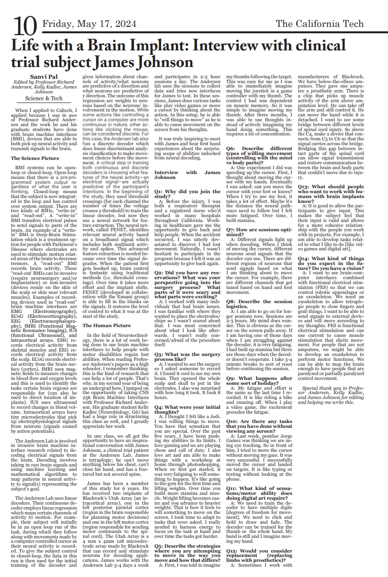 community with mind-reading prosthetics. My work has focused on applying machine learning to address the limitations of current noninvasive and invasive BCI systems.